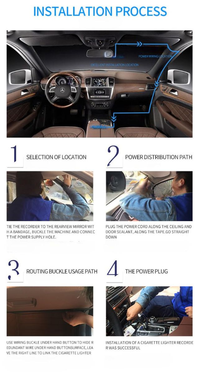 This latest 1080P HD dash cam features three cameras (front + cabin + rear) to record every angle while driving, giving you full protection on the road.