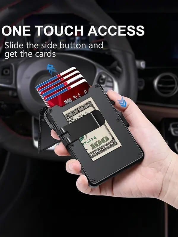 Minimalist Men’s Slim Wallet – 9-13 Card Capacity, RFID Blocking, Aluminum Pop-Up Design