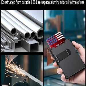 Crafted from durable 6063 aerospace aluminum, this wallet is lightweight yet incredibly strong, designed to withstand daily wear and last for years without losing its sleek look or functionality.