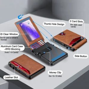 70K SOLD-Wallet for Men – with Pop Up Aluminum Case Money Clip Slim Leather Slot
