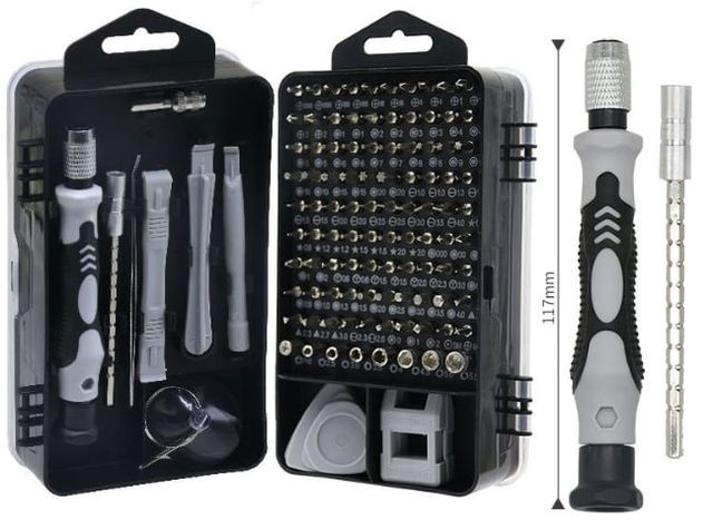 This complete precision screwdriver set includes 115 different bits and tools, making it perfect for repairing smartphones, laptops, tablets, cameras, watches, gaming consoles, and other electronics.
