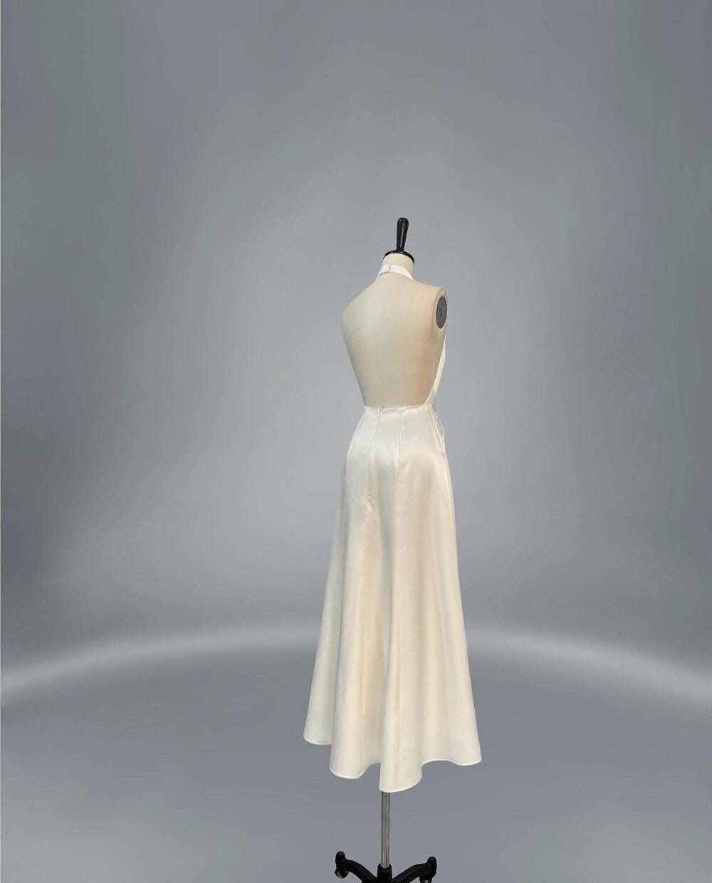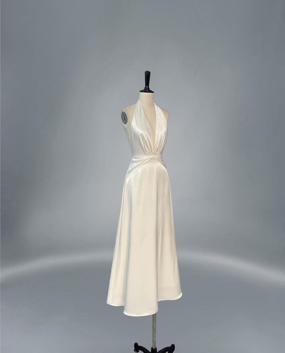 Our silk dress drapes in a flattering A-line cut, brushing the waist and flaring softly. Choose your favorite neckline (Round, V, Square, Boat) and sleeves (from sleeveless to long straight). Satin-lined pockets are discreetly hidden at the hips. Length falls mid-calf or ankle.