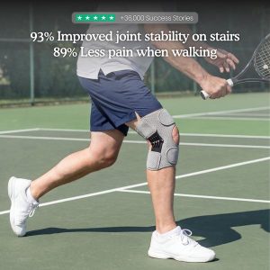 This brace uses built-in springs to help “push” you up when you stand and keep your joint stable while you walk, so your body doesn’t have to do all the heavy lifting itself.